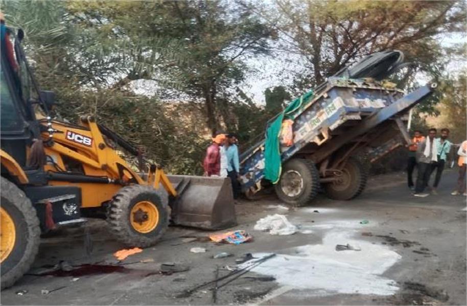 गुना। जिले के मृगवास–कुंभराज मार्ग पर स्थित गणेश मंदिर घाटी के नीचे गुरुवार शाम करीब 5 बजे एक दर्दनाक सड़क हादसा हो गया। सरिया से भरी एक ट्रैक्टर-ट्रॉली अचानक अनियंत्रित होकर पलट गई, जिससे उसमें सवार तीन लोगों की मौके पर ही मौत हो गई है। सूचना मिलते ही स्थानीय लोग और पुलिस मौके पर पहुंची। तीनों मृतकों के शवों को कब्जे में लेकर पोस्टमार्टम के लिए भेजकर जांच मे जुट गई है।