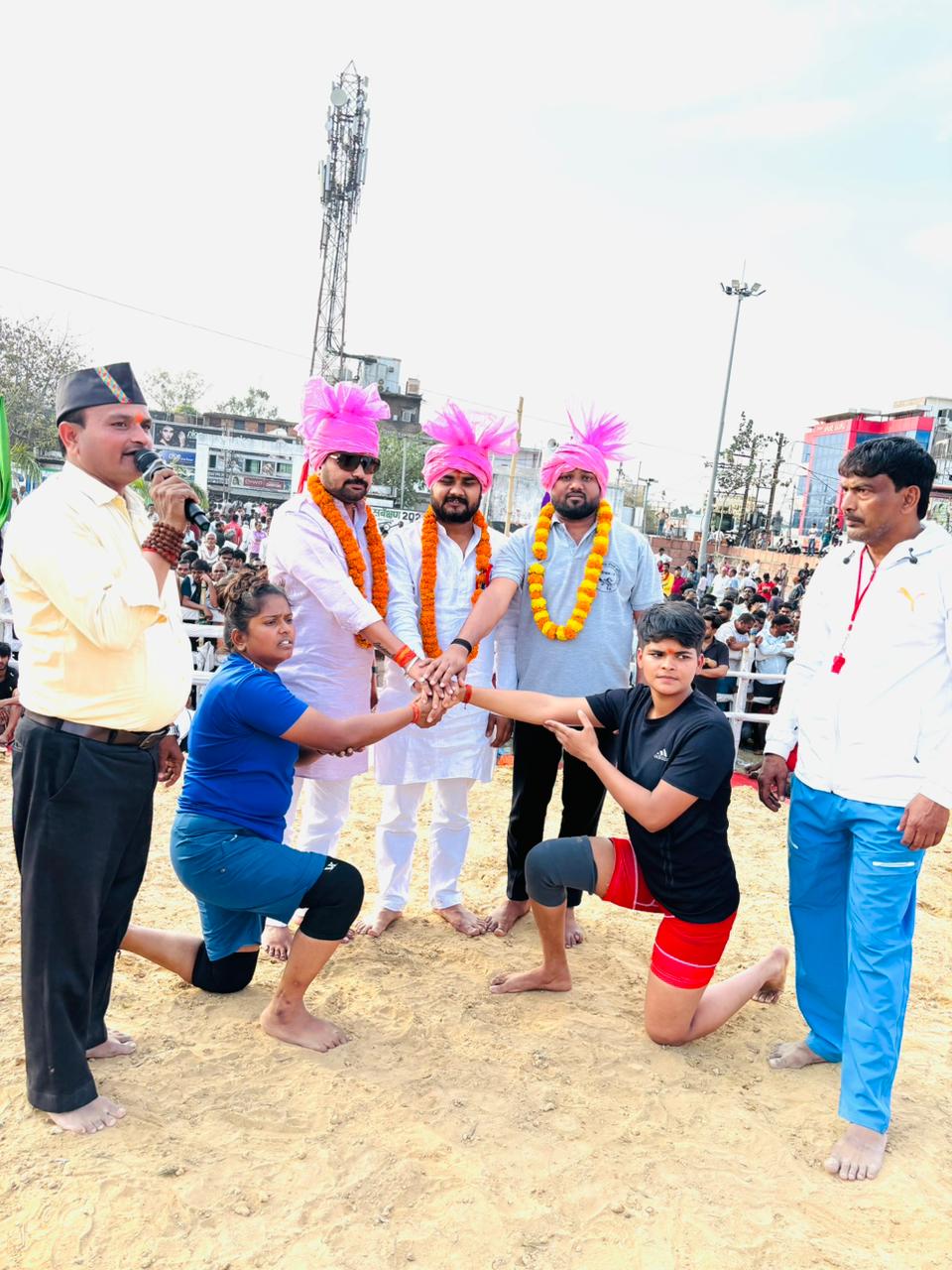 सिंगरौली। शहर के रामलीला मैदान में शनिवार को अंतरराष्ट्रीय कुश्ती दंगल सीजन-7 का शानदार शुभारंभ हुआ। पहले ही दिन 25 से अधिक रोमांचक मुकाबलों ने दर्शकों को देर रात तक रोमांचित किया। देश-विदेश से आए नामी पहलवानों ने अपने जबरदस्त दांव-पेंचों से खेल प्रेमियों का दिल जीत लिया। दंगल का उद्घाटन भाजपा जिलाध्यक्ष सुंदर शाह, पूर्व विधायक रामलल्लू वैश्य, पूर्व महापौर प्रेमवती खैरवार, भाजपा नेता गिरीश द्विवेदी एवं नगर निगम अध्यक्ष देवेश पाण्डेय द्वारा किया गया। अतिथियों ने खिलाड़ियों से खेल भावना बनाए रखने की अपील करते हुए आयोजन की सराहना की।